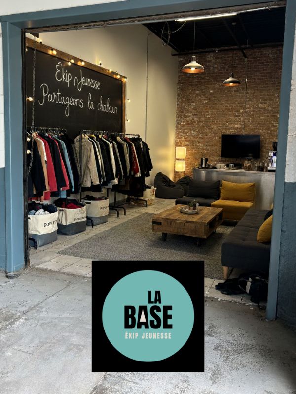 Chez ÉKIP JEUNESSE, on a voulu créer un espace où les jeunes se sentent bienvenus dès qu’ils passent la porte. LA BASE sera un local chaleureux qui servira aussi d’entrepôt où ils pourront venir chercher gratuitement leurs besoins de base mais aussi quelque chose d’encore plus précieux… une pause.